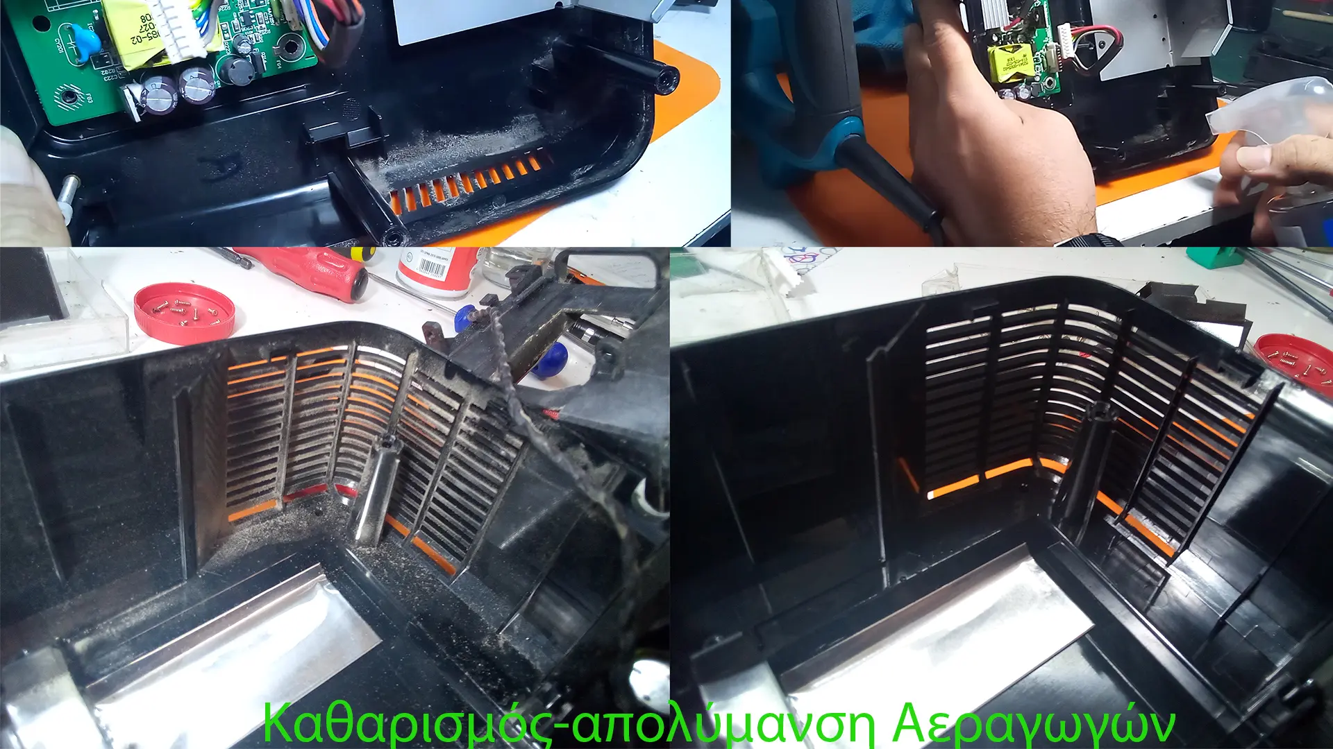 Καθαρισμός όλων των ανεμιστήρων και απολύμανση τους. Ως γνωστό όλοι οι projector είναι 100%  αερόψυκτοι, πράγμα που σημαίνει πως υπάρχουν κάποιες ομάδες ανεμιστήρων που εισάγουν κρύο αέρα από το περιβάλλον που βρίσκεται και κάποιες άλλες ομάδες ανεμιστήρων που εξάγουν τον ζεστό αέρα έξω από το μηχάνημα,  με τέτοιο τρόπο που να υπάρχει μια σταθερή θερμοκρασία καθ’ όλη την διάρκεια λειτουργίας τους. Όταν οι ανεμιστήρες είναι καλυμμένοι με σκόνη 2 πράγματα συμβαίνουν.
